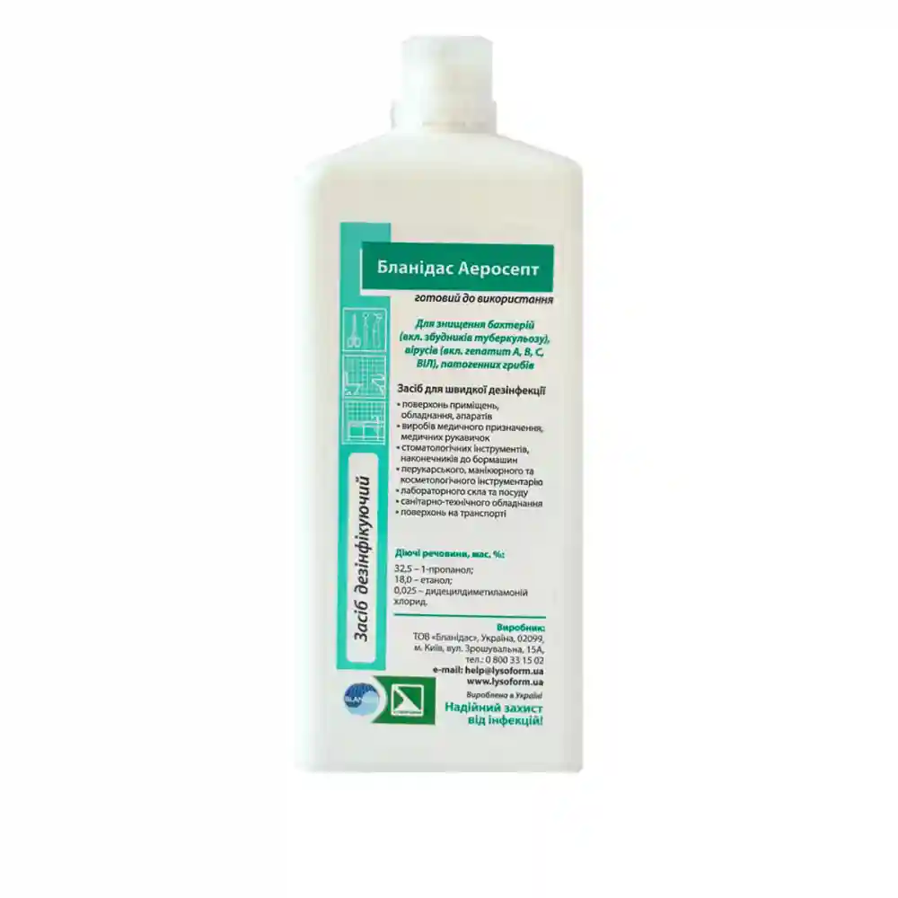 Состав: 1 пропанол -32,5%, этанол-18%, дидецилдиметиламония хлорид.