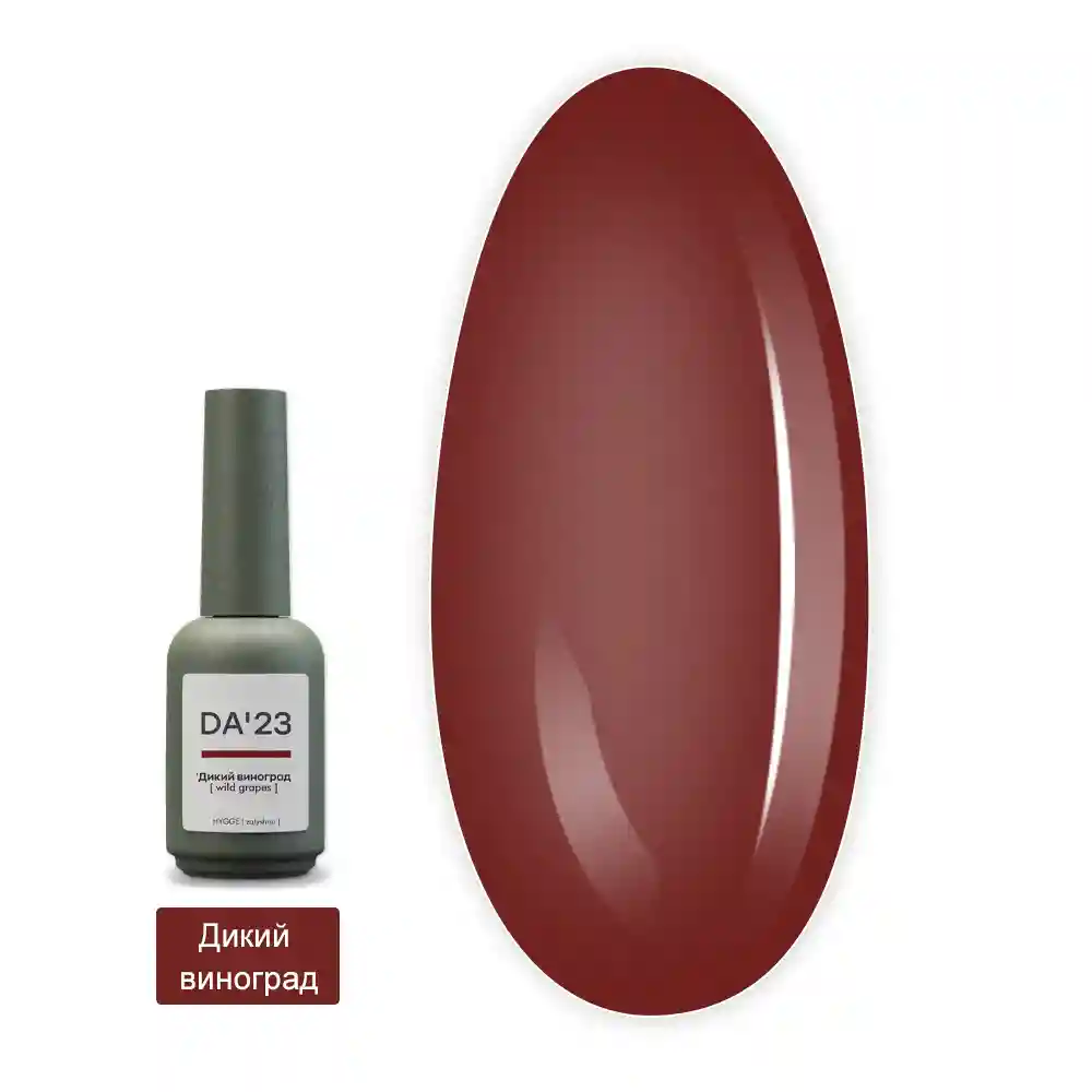 DA23 бордовый гель лак Дикий виноград [wild grapes] — тёмно-ягодный оттенок, который переносит в атмосферу виноградных лоз осенью, наполненных сочными спелыми ягодами. Этот глубокий цвет идеально подходит для создания маникюра, который привнесёт ощущение осенней теплоты и уюта в любой образ.
