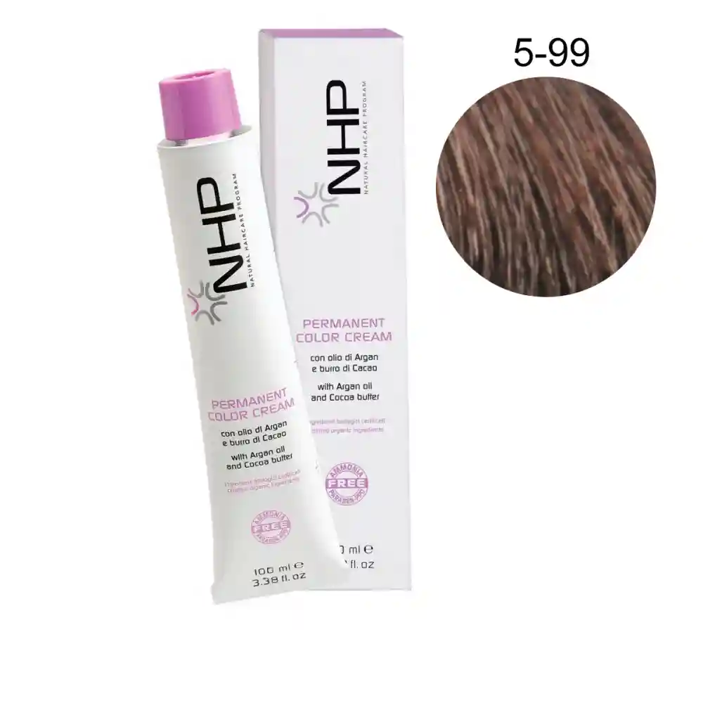 Permanent Color Cream от NHP рекомендована для окрашивания хрупких и поврежденных волос. Отсутствие парафина, вазелина, минеральных масел и силиконов делает продукт максимально безопасным. Чистейшие сертифицированные органические масла какао и арганы оказывают реструктурирующее действие на волокно волоса. Краска минимизирует риск раздражения кожи головы, обеспечивает стойкий яркий цвет, осветление до 5 тонов и 100% закрашивание седины.