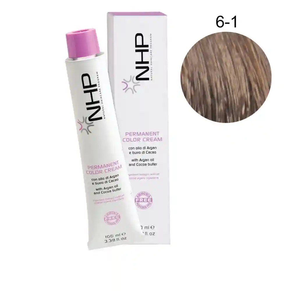Permanent Color Cream от NHP рекомендована для окрашивания хрупких и поврежденных волос. Отсутствие парафина, вазелина, минеральных масел и силиконов делает продукт максимально безопасным. Чистейшие сертифицированные органические масла какао и арганы оказывают реструктурирующее действие на волокно волоса. Краска минимизирует риск раздражения кожи головы, обеспечивает стойкий яркий цвет, осветление до 5 тонов и 100% закрашивание седины.