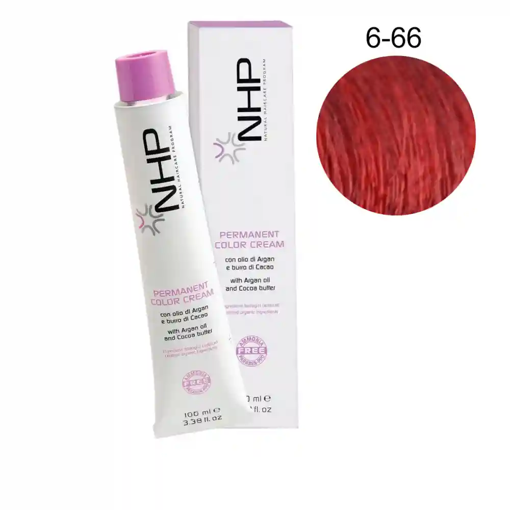 Permanent Color Cream от NHP рекомендована для окрашивания хрупких и поврежденных волос. Отсутствие парафина, вазелина, минеральных масел и силиконов делает продукт максимально безопасным. Чистейшие сертифицированные органические масла какао и арганы оказывают реструктурирующее действие на волокно волоса. Краска минимизирует риск раздражения кожи головы, обеспечивает стойкий яркий цвет, осветление до 5 тонов и 100% закрашивание седины.
