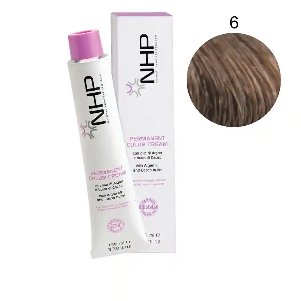 Permanent Color Cream от NHP рекомендована для окрашивания хрупких и поврежденных волос. Отсутствие парафина, вазелина, минеральных масел и силиконов делает продукт максимально безопасным. Чистейшие сертифицированные органические масла какао и арганы оказывают реструктурирующее действие на волокно волоса. Краска минимизирует риск раздражения кожи головы, обеспечивает стойкий яркий цвет, осветление до 5 тонов и 100% закрашивание седины.