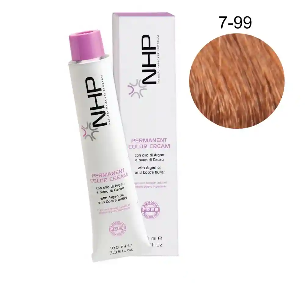 Permanent Color Cream от NHP рекомендована для окрашивания хрупких и поврежденных волос. Отсутствие парафина, вазелина, минеральных масел и силиконов делает продукт максимально безопасным. Чистейшие сертифицированные органические масла какао и арганы оказывают реструктурирующее действие на волокно волоса. Краска минимизирует риск раздражения кожи головы, обеспечивает стойкий яркий цвет, осветление до 5 тонов и 100% закрашивание седины.