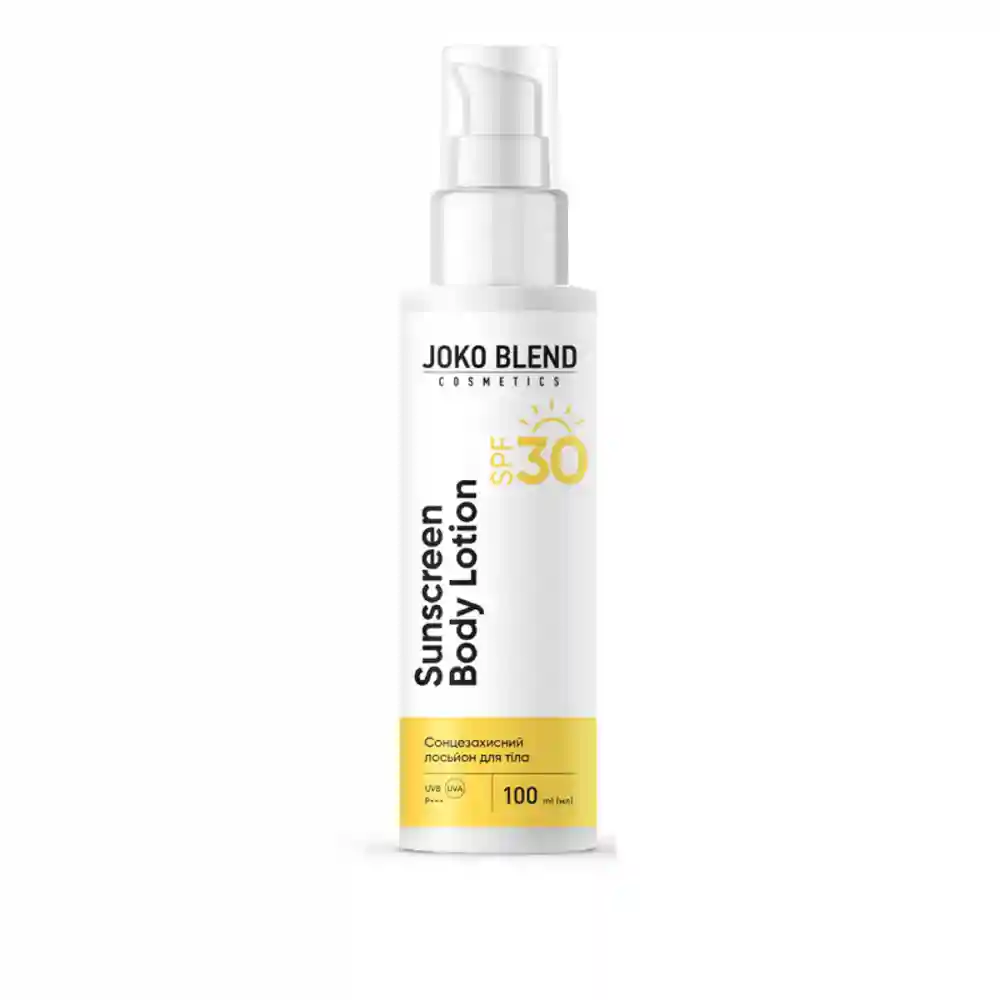 Солнцезащитный лосьон для тела SPF 30 Joko Blend 100 мл помогает защитить тело от солнечных ожогов, покраснений и других повреждений кожи, вызванных ультрафиолетом. Средство содержит фотостабильные химические фильтры нового поколения, обеспечивающие защиту широкого спектра UVA и UVB лучей. Лосьон легко наносится и быстро поглощается кожей, не оставляет белые следы и липкость.