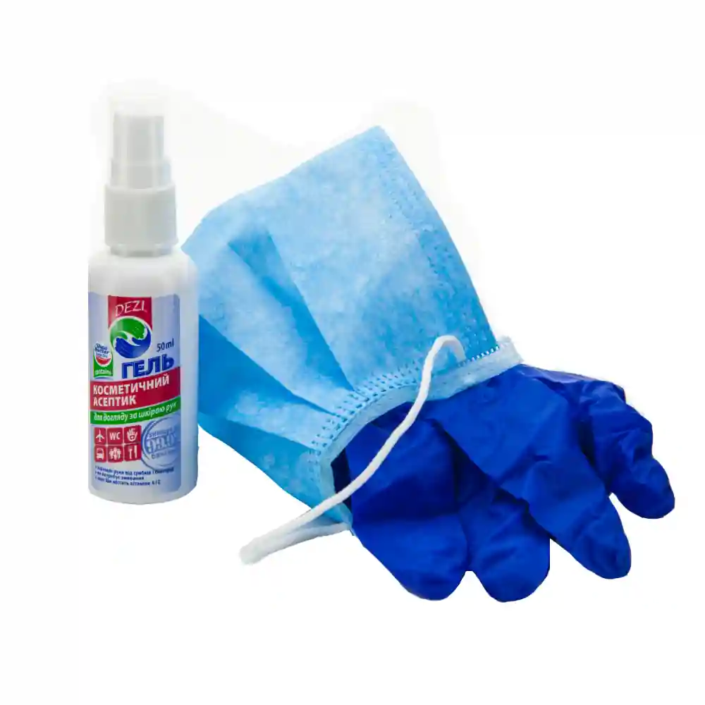 антисептик 50 мл + маска медицинская 1 шт + перчатки 1шт