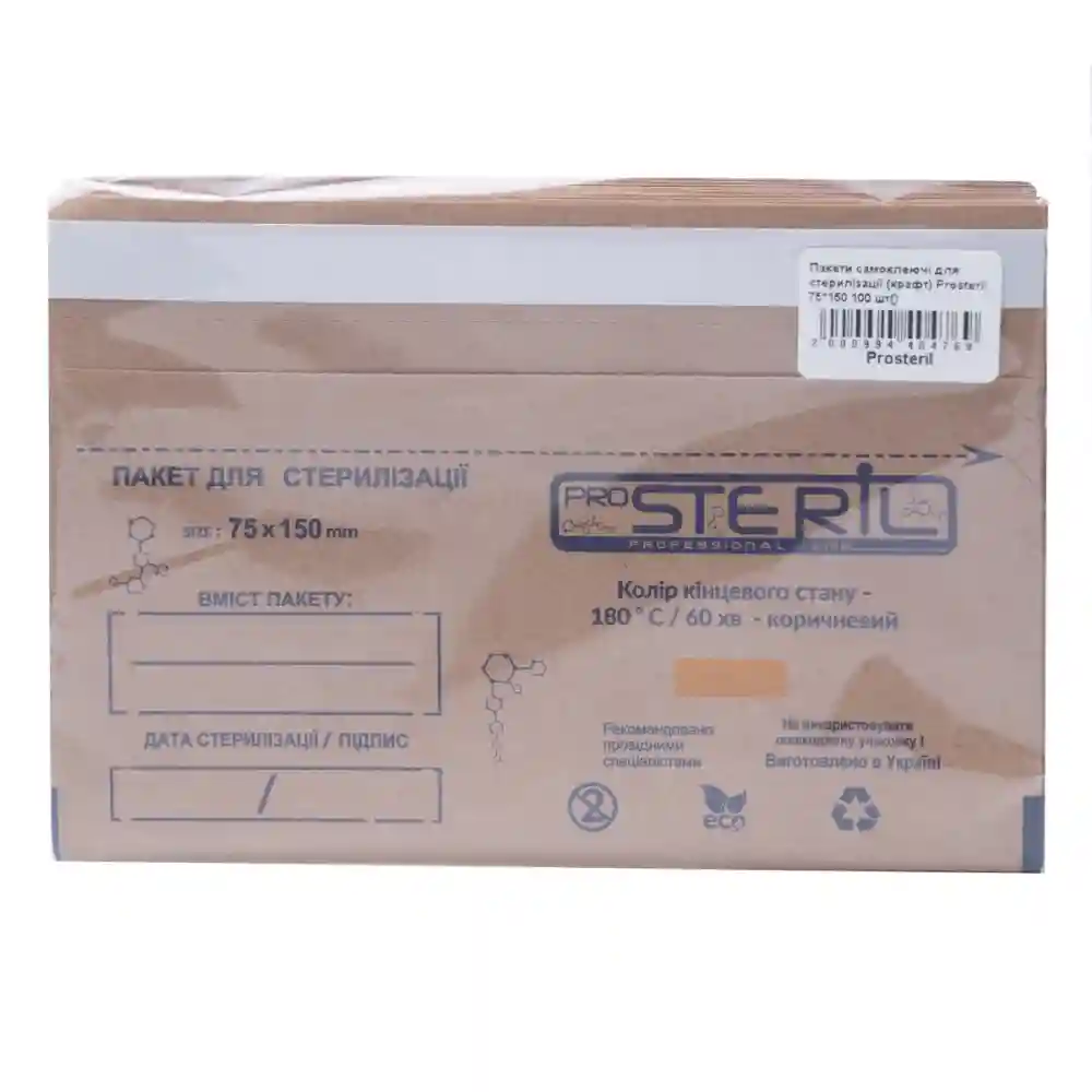 Пакеты самоклеющиеся для стерилизации (крафт) Prosteril  75х150 100 шт