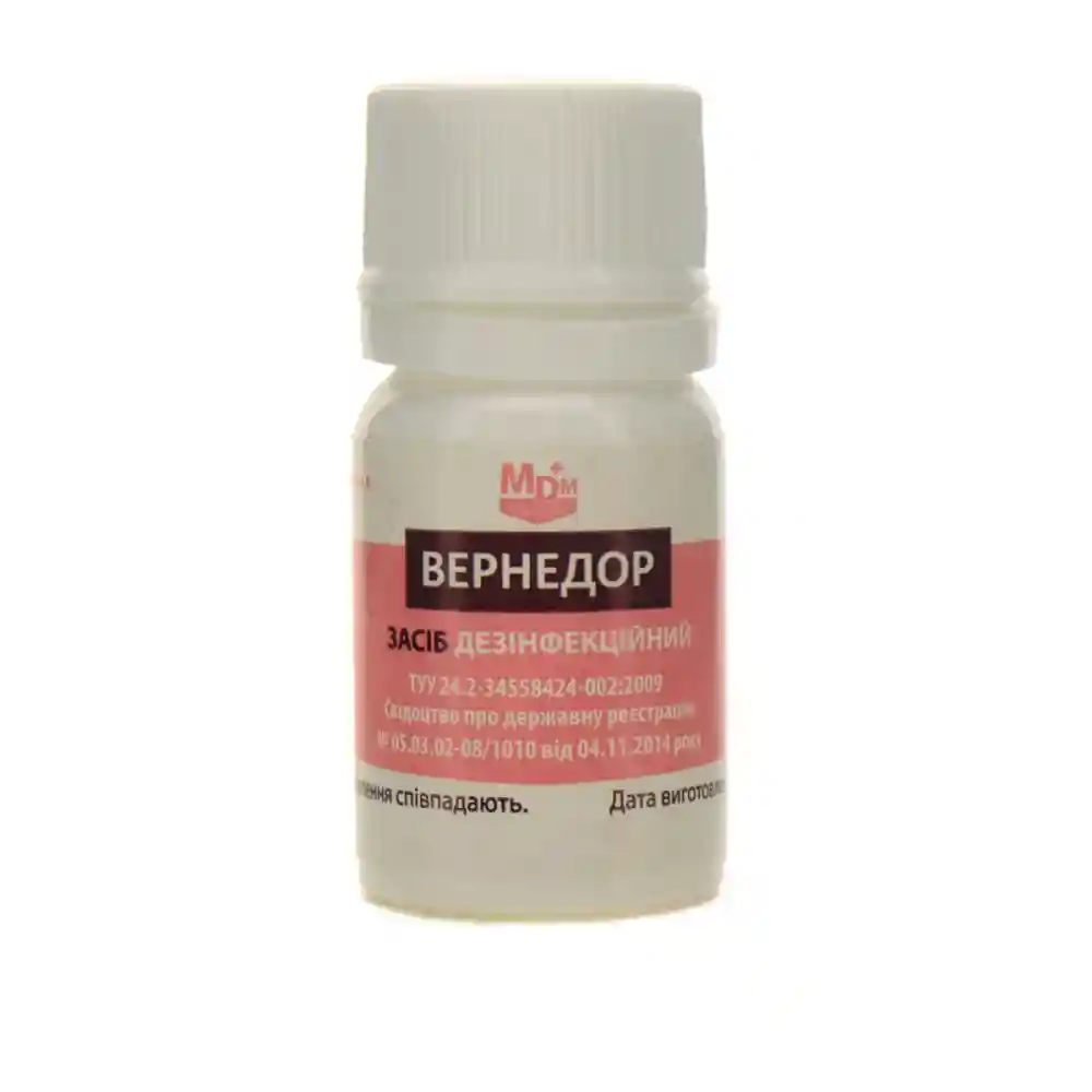 Вернедор имеет огромный спектр антимикробного действия, борется с туберкулезом и особо опасным бактериям, гепатиты В и С, ВИЧ, полиомелитом, кандидозами, дерматомикозами, плесневыми грибками, обладает спороцидными свойствами. Экономичность рабочих растворов- необходимо всего лишь 15 мл/м2.