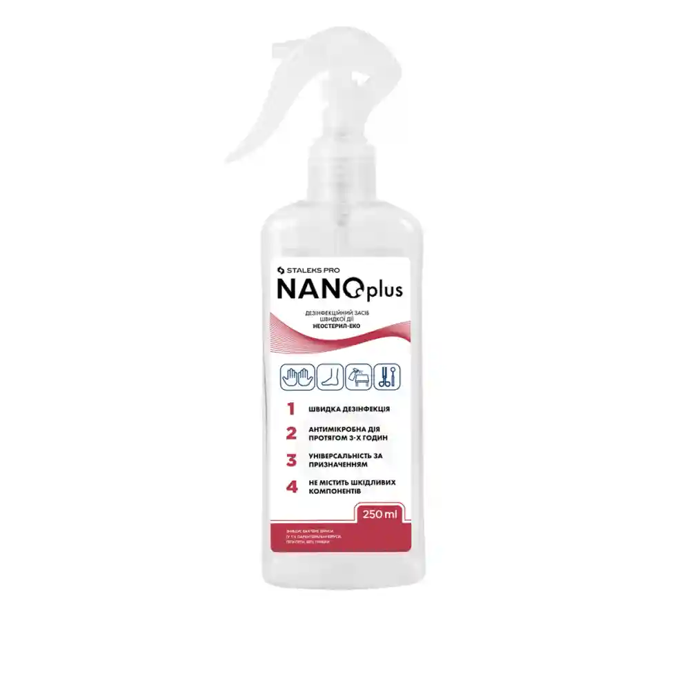 NANOplus от STALEKS — это эффективный дезинфектор в удобной упаковке с триггером. Средство полностью готово к использованию, не требует разведения. Быстро уничтожает патогены: вирусы (в т.ч. ВИЧ, гепатит), бактерии и грибки. Подходит для обработки рук, инструментов и рабочих поверхностей.