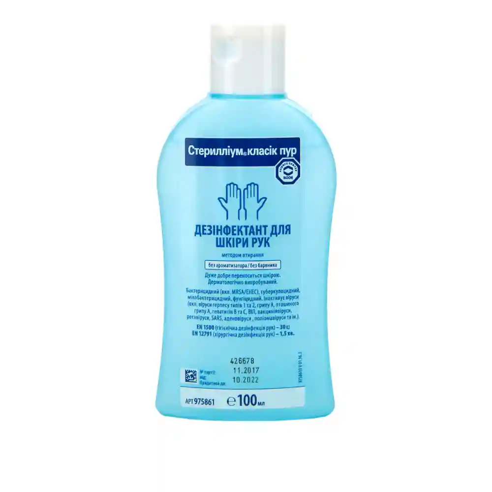 Sterillium classic pure предназначен для обработки кожи и гигиенической дезинфекции перед инъекциями и пункциями. Также это средство отлично подходит для дезинфекции рук, если рядом нет рукомойника, при этом не вызывает аллергических реакций. Он удобный в использовании и за 15 секунд уничтожает ротавирусы, герпес, вирусы гепатита В и С, ВИЧ, птичий грипп и др. За 30 сек борется с бактериями туберкулеза, стафилококка и аденовирусами. За 60 сек уничтожает полиомавирусы. Его широко используют в медицинских учреждениях, лабораториях, школах, детских садах и косметологических кабинетах.