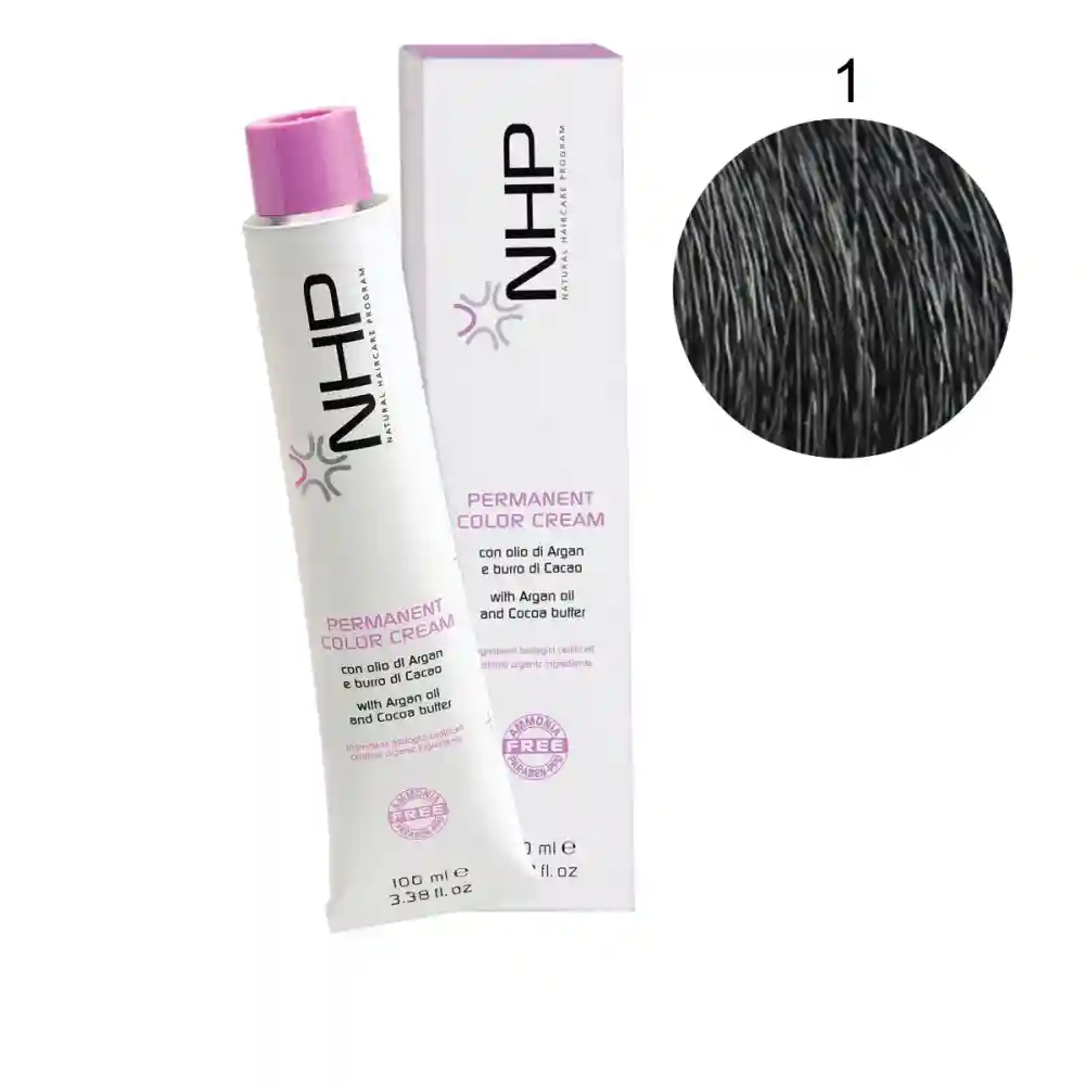 Permanent Color Cream від NHP рекомендована для фарбування крихкого та пошкодженого волосся. Відсутність парафіну, вазеліну, мінеральних масел та силіконів робить продукт максимально безпечним. Найчистіші сертифіковані органічні олії какао та аргани мають реструктурну дію на волокно волосся. Фарба мінімізує ризик подразнення шкіри голови, забезпечує стійкий яскравий колір, освітлення до 5 тонів і 100% зафарбовування сивини.
