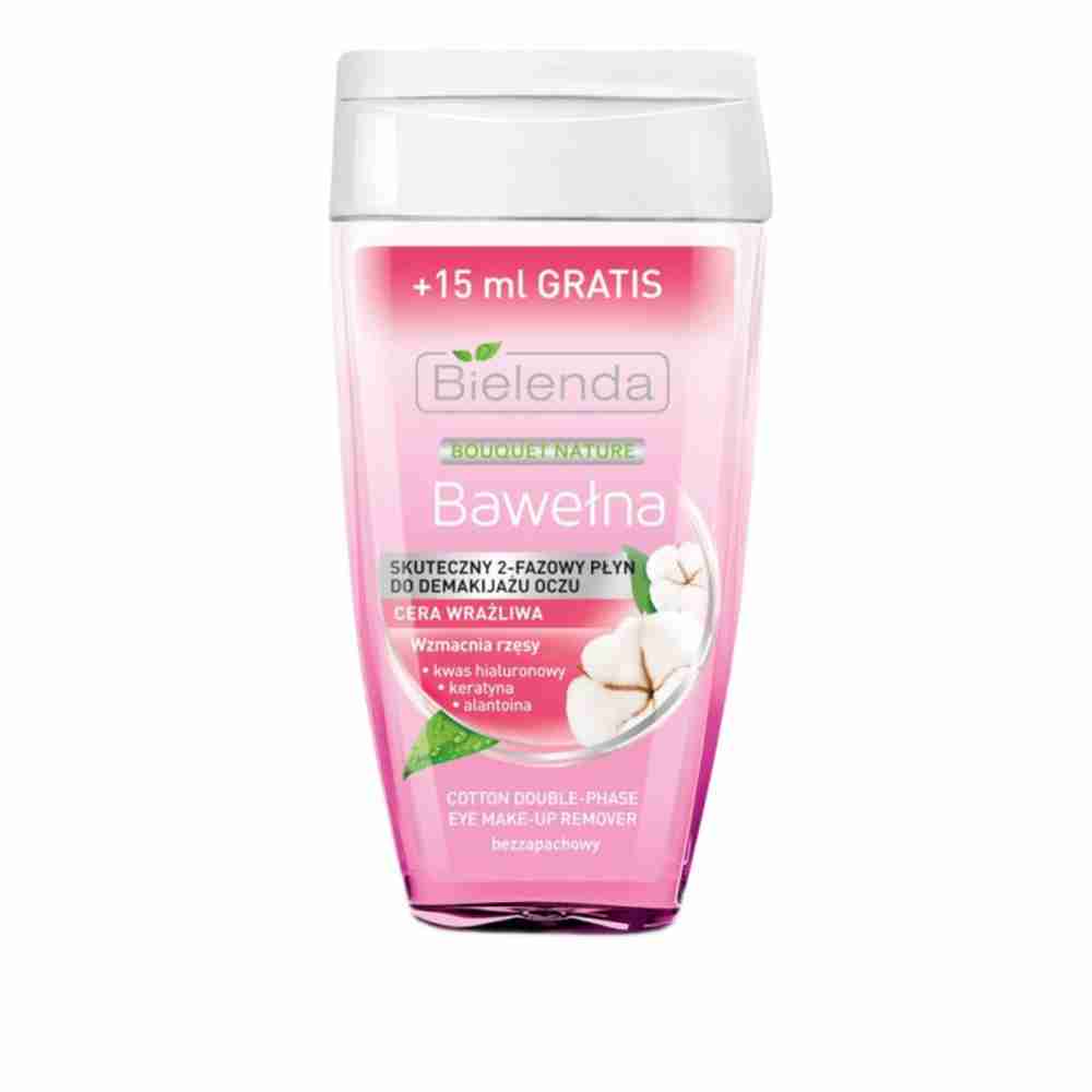 Двухфазная жидкость быстро растворяет макияж и очищает кожу. В состав средства включена кислота гиалуроновая, кератин и аллантоин, которые увлажняют, укрепляют кожу, разглаживают мелкие морщины и повышают эластичность. В составе есть Хлопок, который оказывает очень деликатное действие и успокаивает склонную к раздражениям кожу.